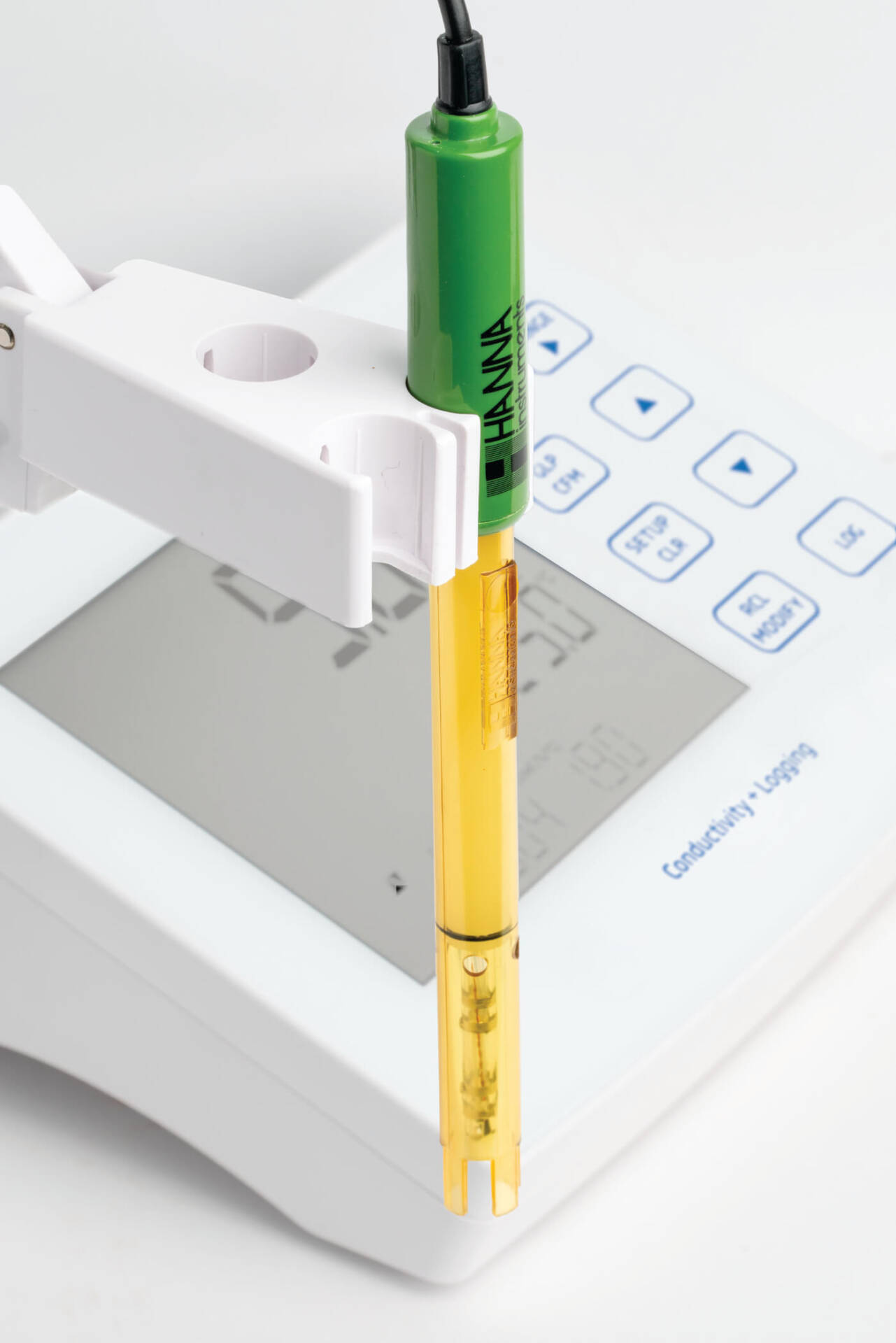 El HI2631 permite realizar mediciones rápidas y precisas utilizando el electrodo de conductividad digital HI763100 de Hanna Instruments® con sensor de temperatura integrado.