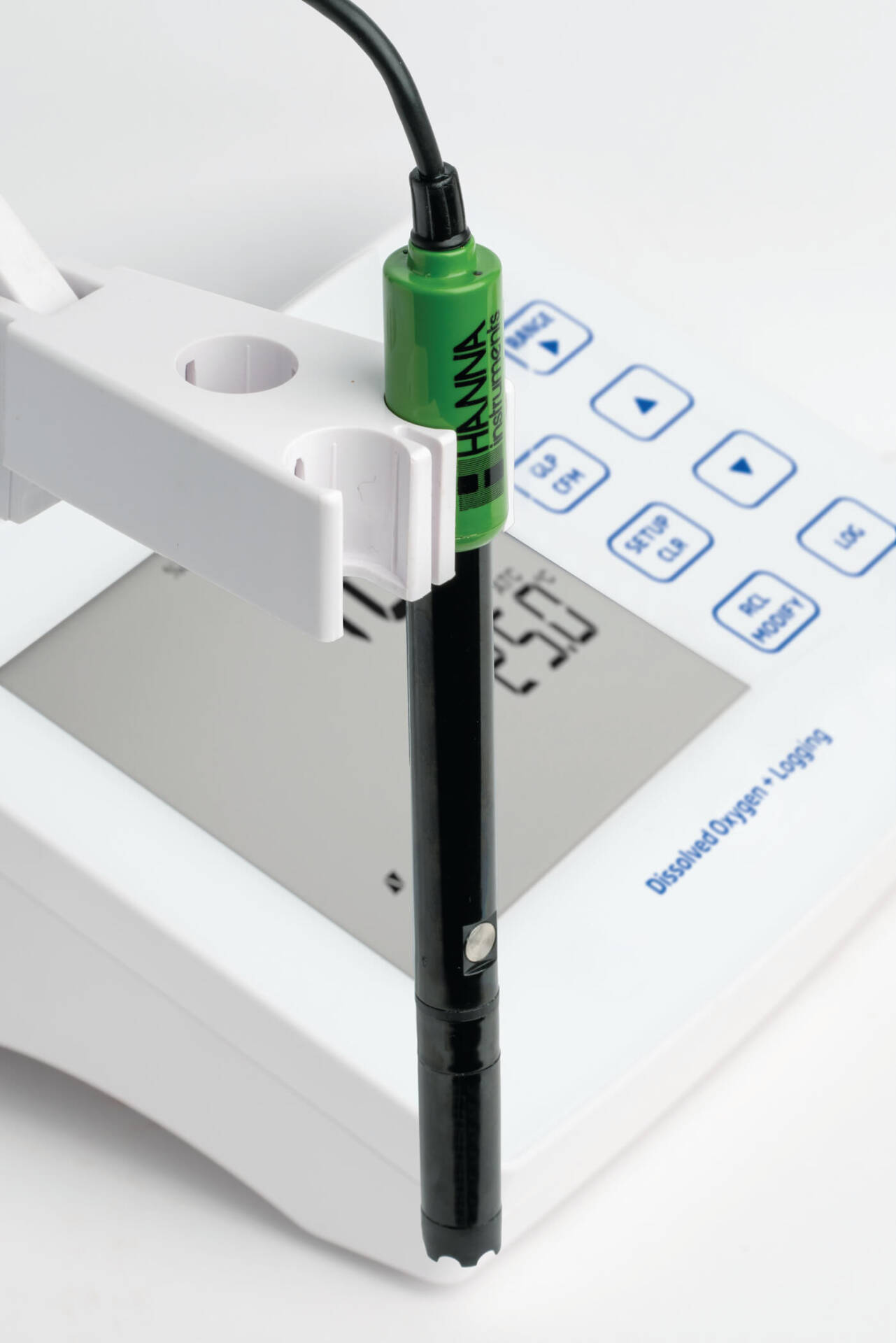 El HI2641 permite realizar mediciones rápidas y precisas utilizando la sonda digital de oxígeno disuelto HI764080 de Hanna Instruments® con sensor de temperatura integrado.